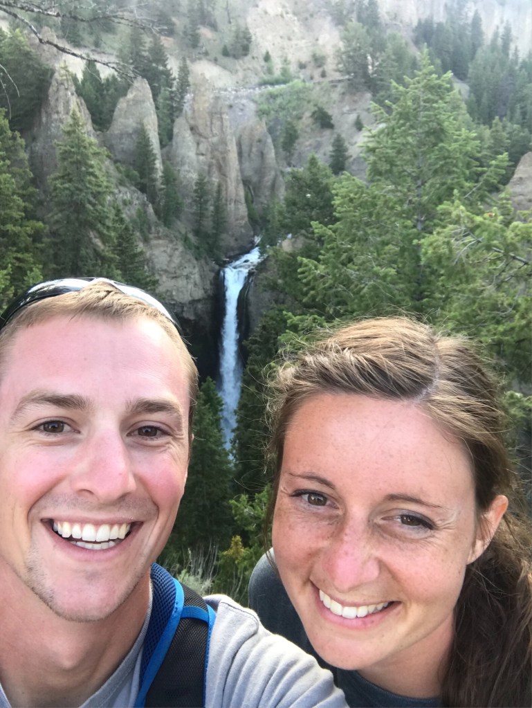 We played around with this swan for a while on our way out of Yellowstone and enjoyed the drive into the Tetons. Wow, the vistas in the Tetons are so impressive! We snagged some stamps for our National Park passport and somehow got into the park without paying?! We passed a pay booth on our way out, but nothing on the way in. We stopped to see a grizzly bear with her cub and a moose with her fuzzy baby. We were lucky enough to snag a backpacking permit to the backcountry up an area called Death Canyon. After picking up our bear cans and packing up our brand new osprey packs, we hit the trail. Gorgeous!! A good part of the trail went alongside thundering cascades that commanded respect. We were so pooped by the time we got to the camping zone, we took the first available spot–8 feet from the camping ok sign. Felt SO good to snuggle in.